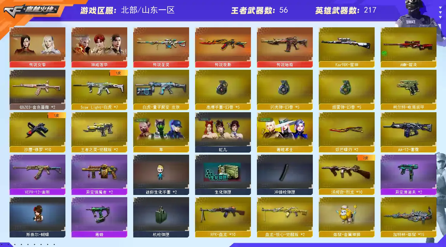 🔥北部山东一区 :生化/挑战/爆破/刀战/顶配账号【此账号累充20W,严禁开挂、乱点角色属性,通行证金币严禁挥霍,探险消卡,卡BUG!