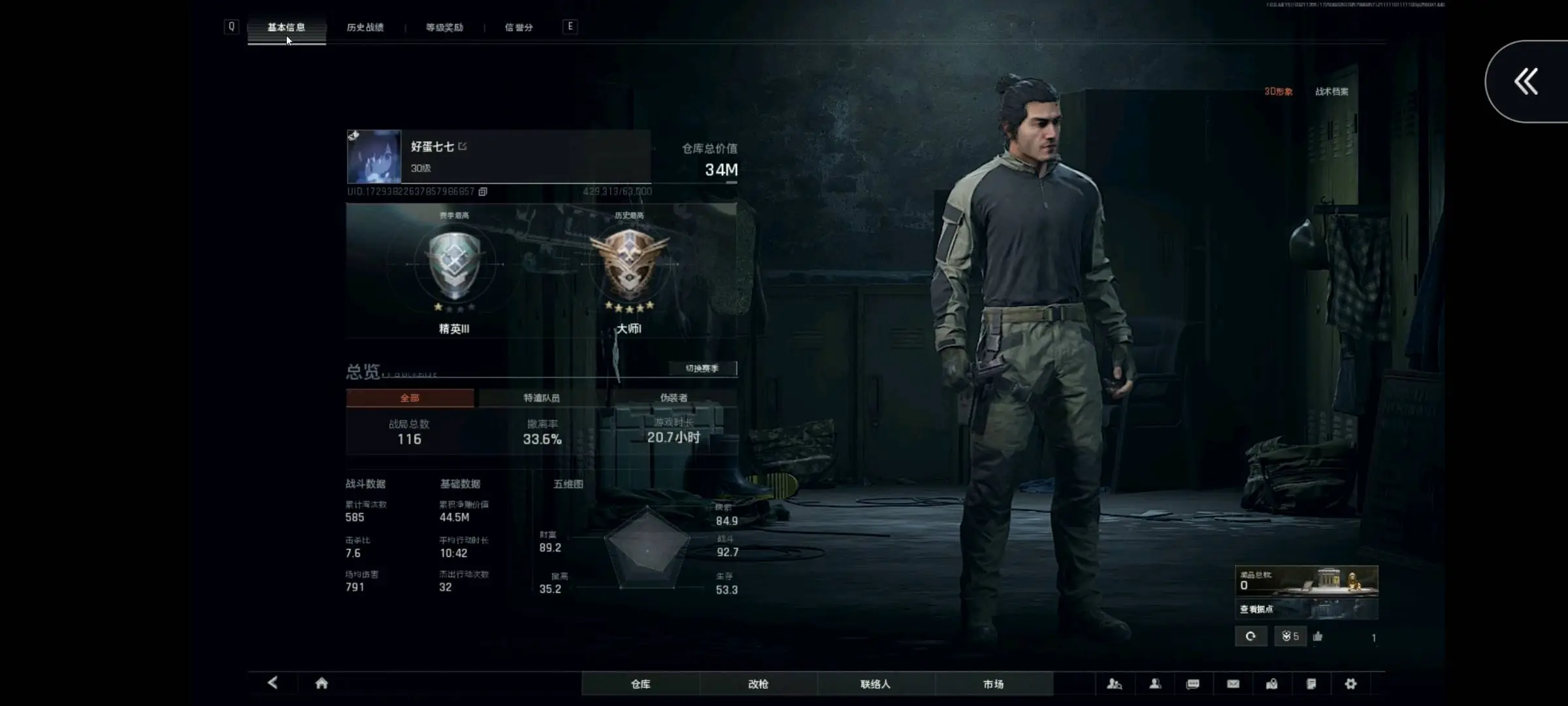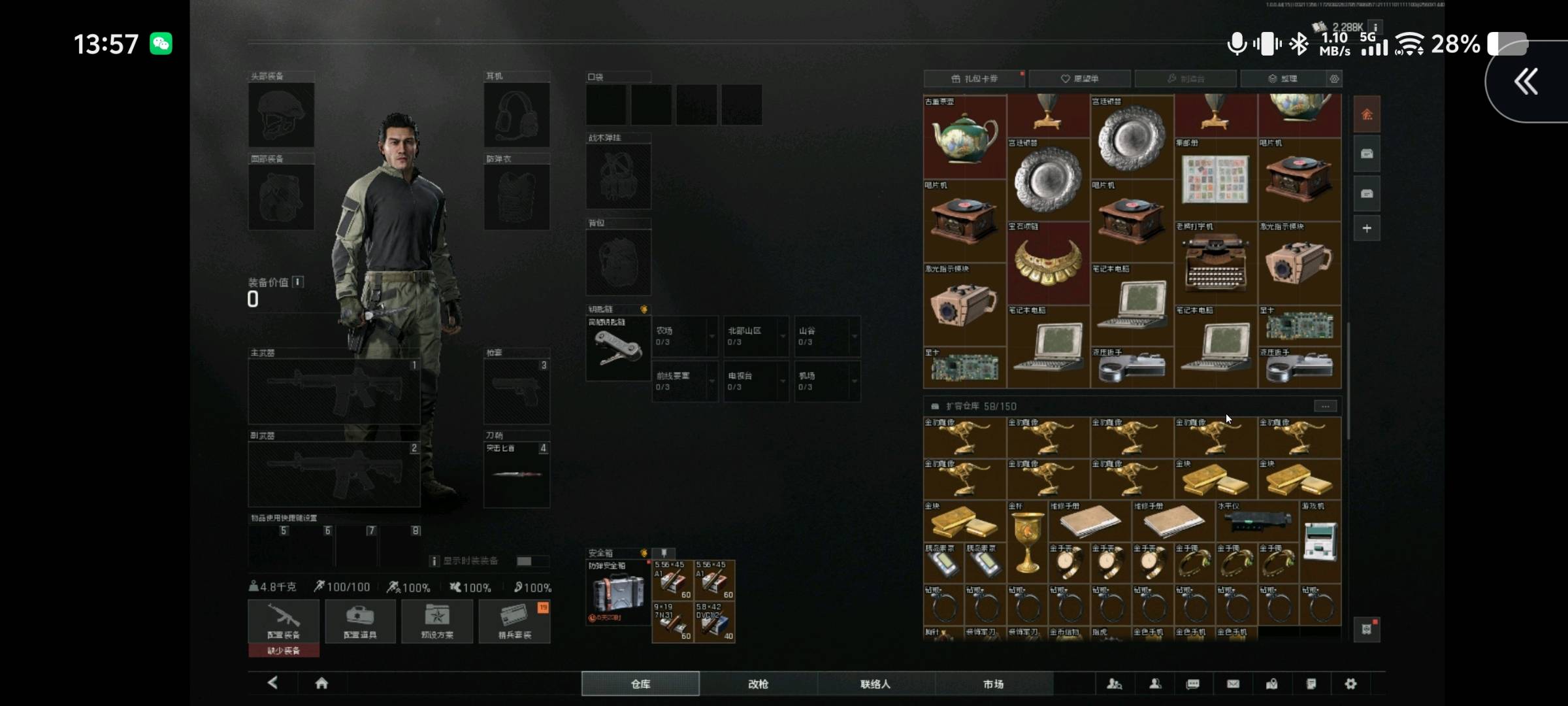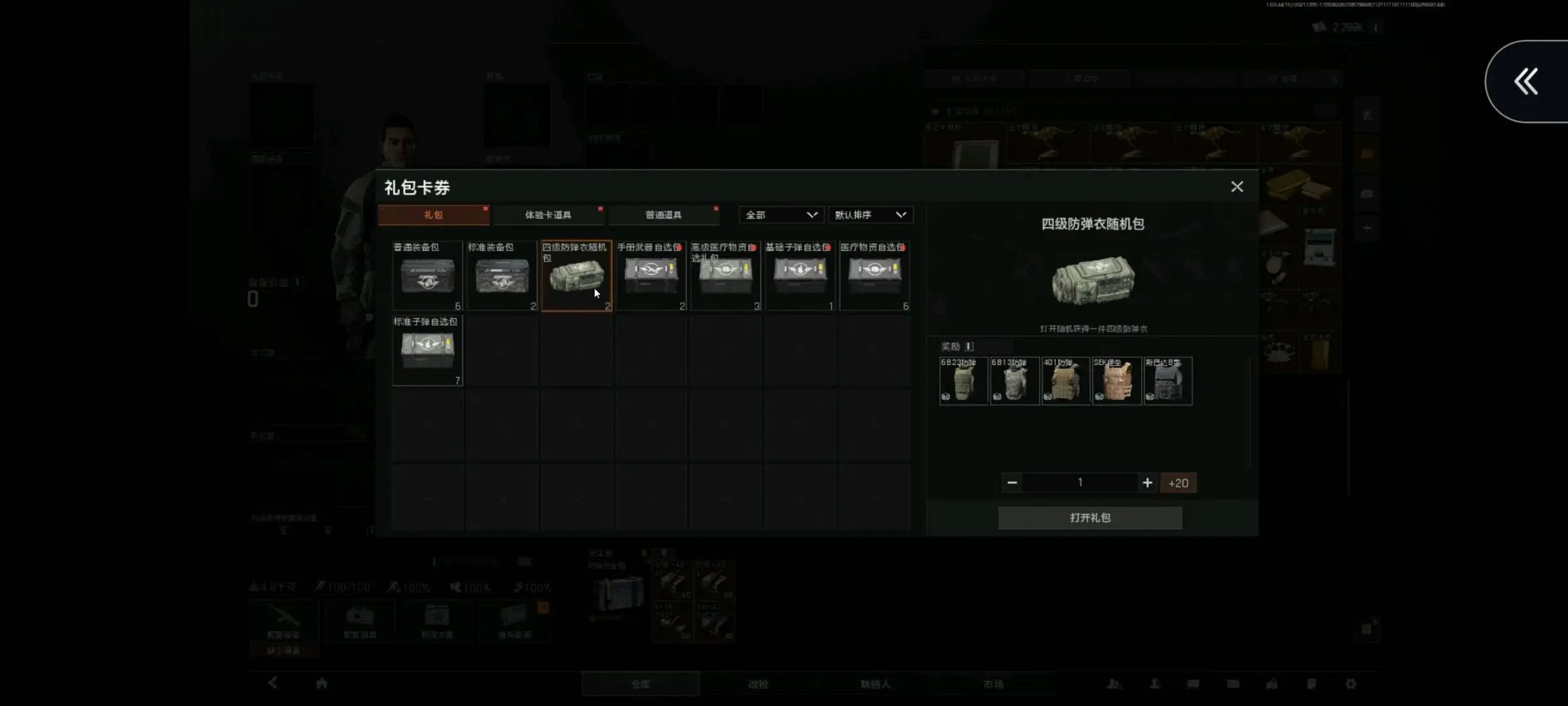 仓库有小金子弹和七个装备包,回归号,30级解锁所有地图强度