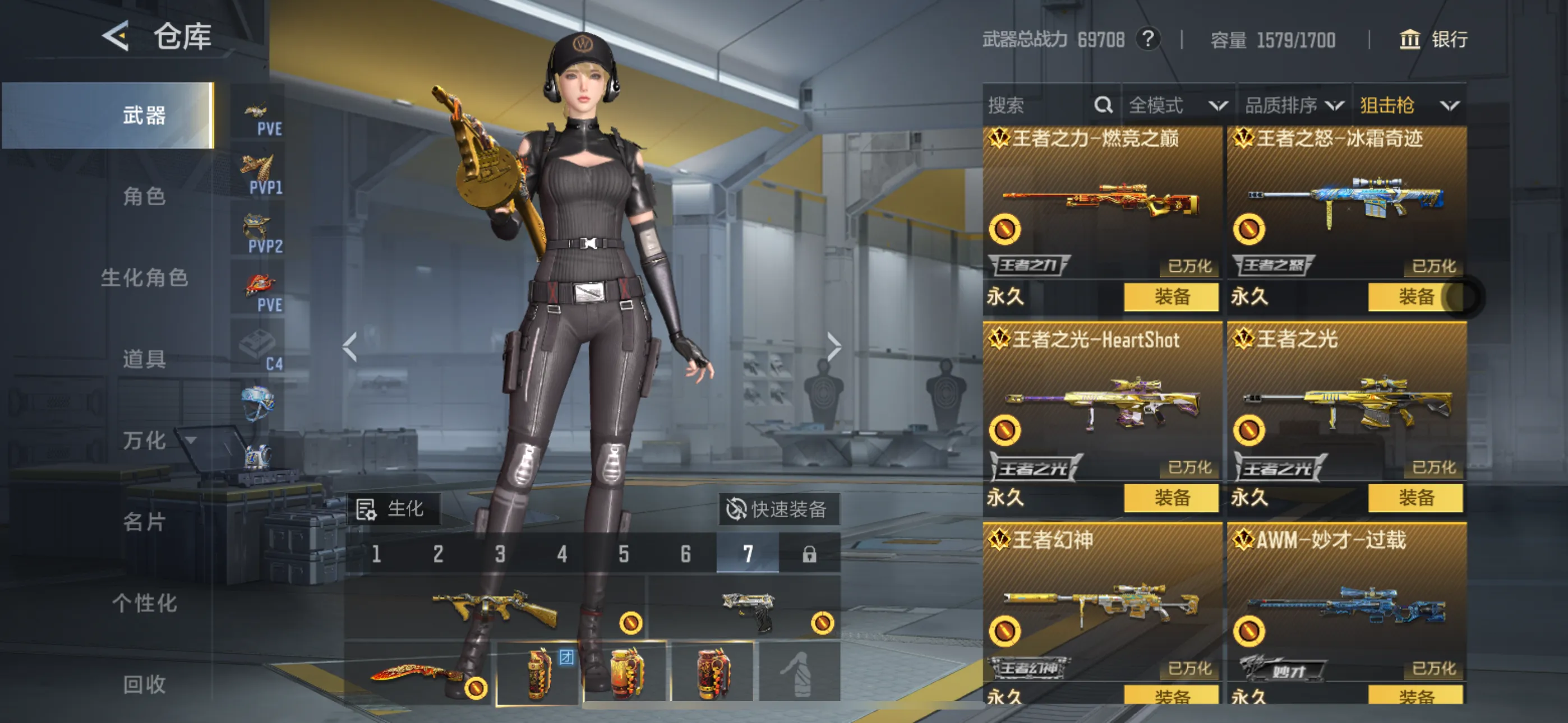 该账号已在公安局备案!不要开挂和恶意毁号!狙击三幻神全部都有 满配王力 可搭配出5套王者至尊套装 热门武器典韦 凤雏 王者白虎全都有!想玩赶紧来租价格绝对实惠! 竞技生化通吃!