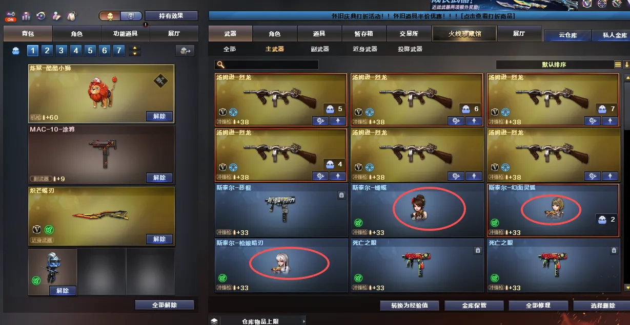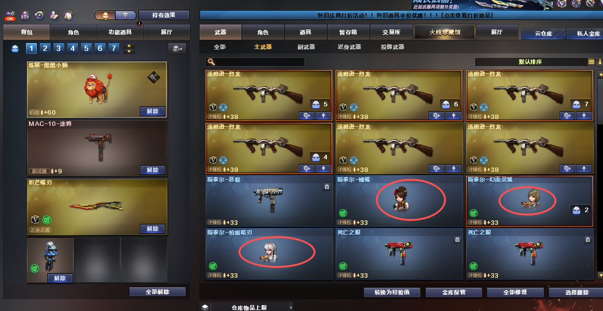 小人枪主武:AWM-灵狐-15周年嘉年华、HK417-朱雀-蛇隐宗、斯泰尔-枪娘暗刃、斯泰尔-蝴蝶、斯泰尔-幻面灵狐、炼狱-酷酷小狮