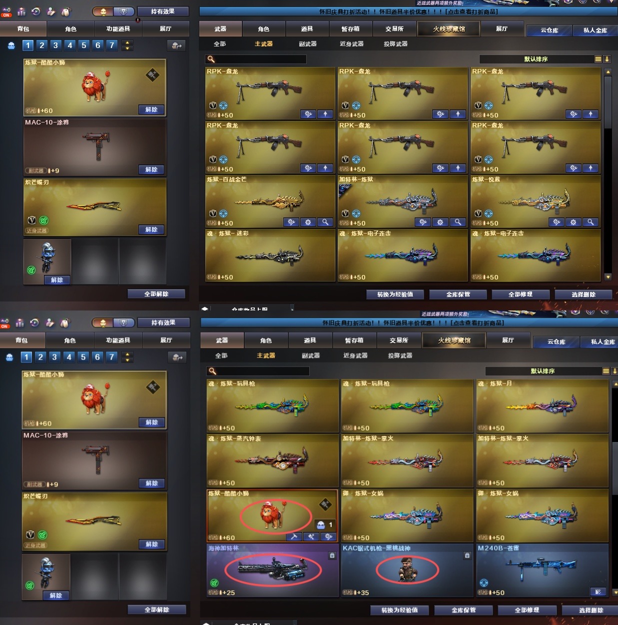 其他:AK47-B-身先士卒、AK47-B-常胜将军-曹操、AK47-B-常胜将军-刘备、战神-紫绶金章、炼狱-玩具枪、修罗-CFSTAR、死神-秘银、HK417-朱雀-电竞之星