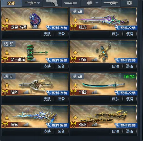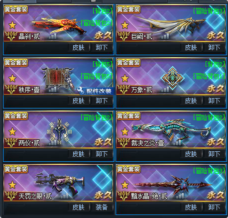 命运贰 天平贰 晶刹贰 巨阙贰 秩序壹 万象贰 两仪贰 暗水晶贰 裁决壹 天罚贰