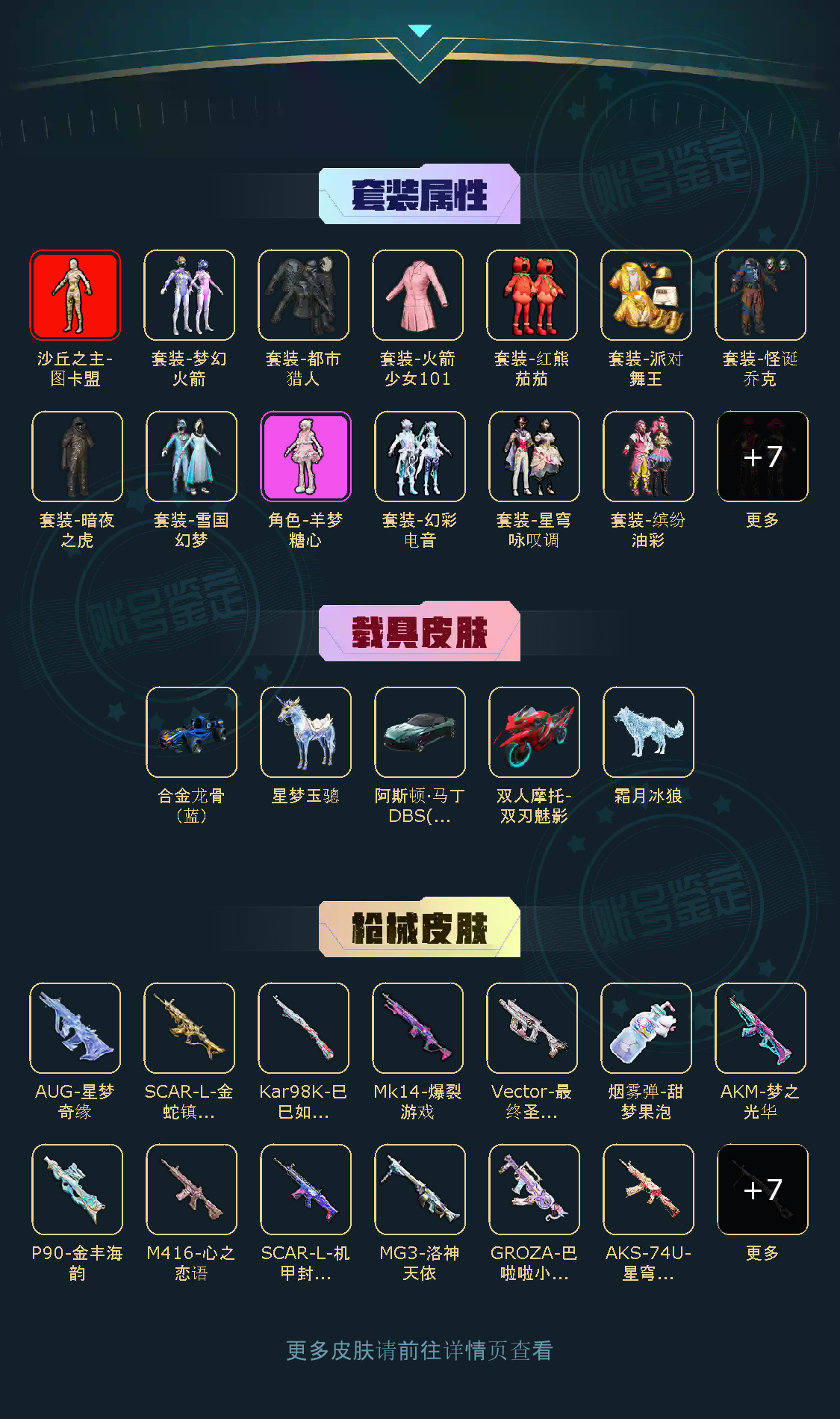 15粉,5载具,20特效枪,260套装,22王牌印记