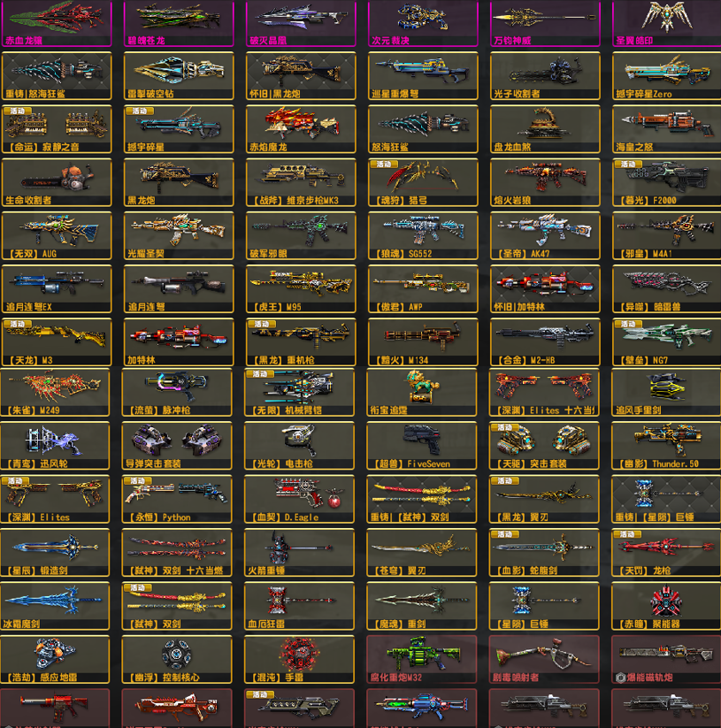 3. 更新:马神赤血龙骧!已去黑雾!光束1,维京全套,双闪电94野牛汽锤!赛季武器有第1,14,16到22赛季!配件武器最少5阶,强化武器全满!