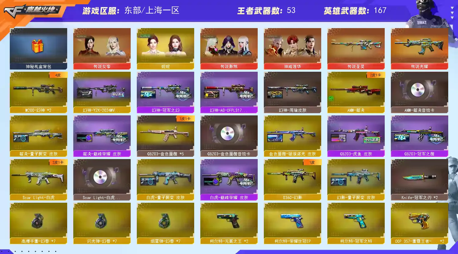 女帝7幻兽|4柯尔特4COP|神威莲华六盘六烈|金色背包|幻神YZK 冠幻套|裁决、白虎三件套|G36c