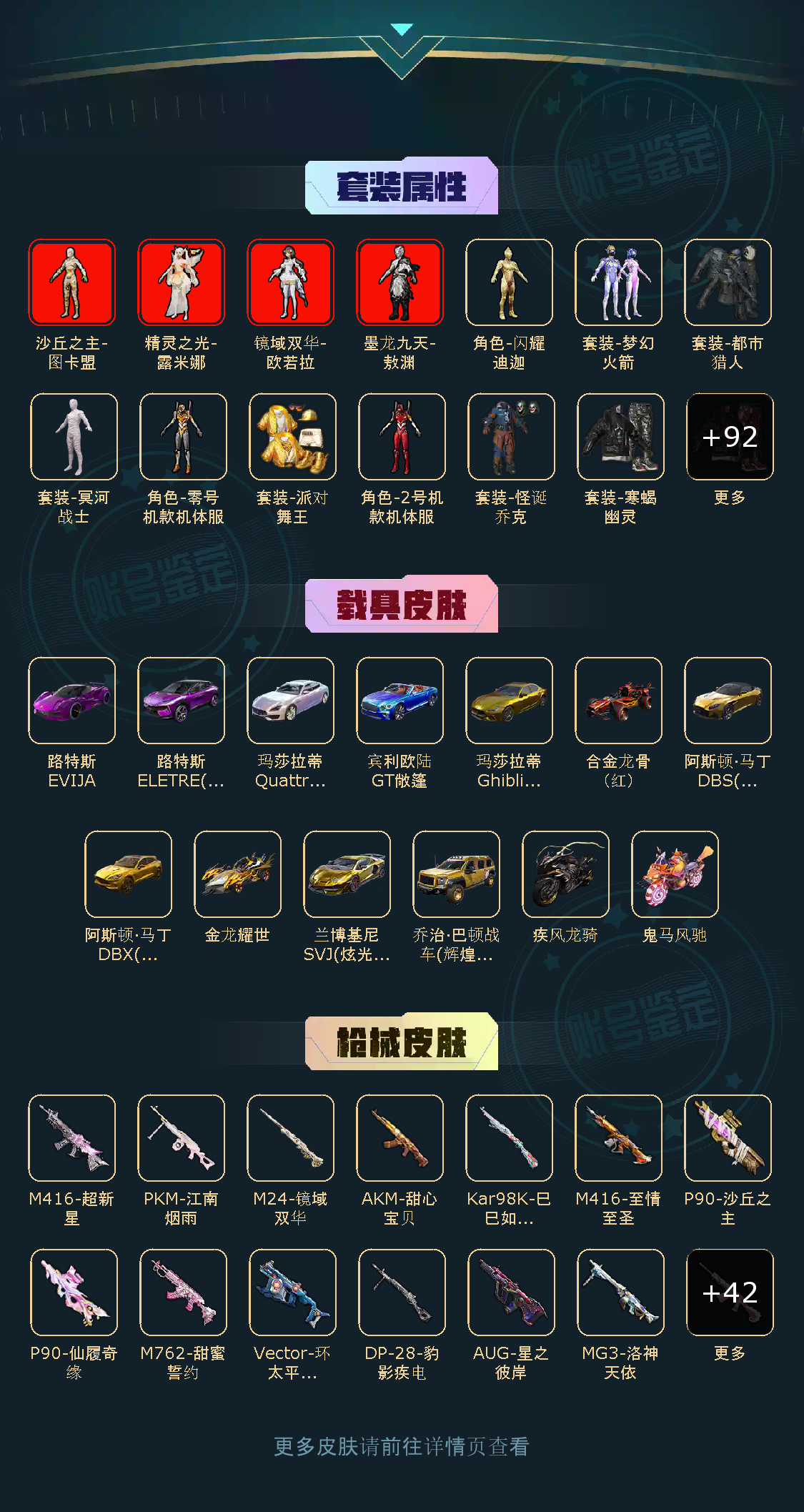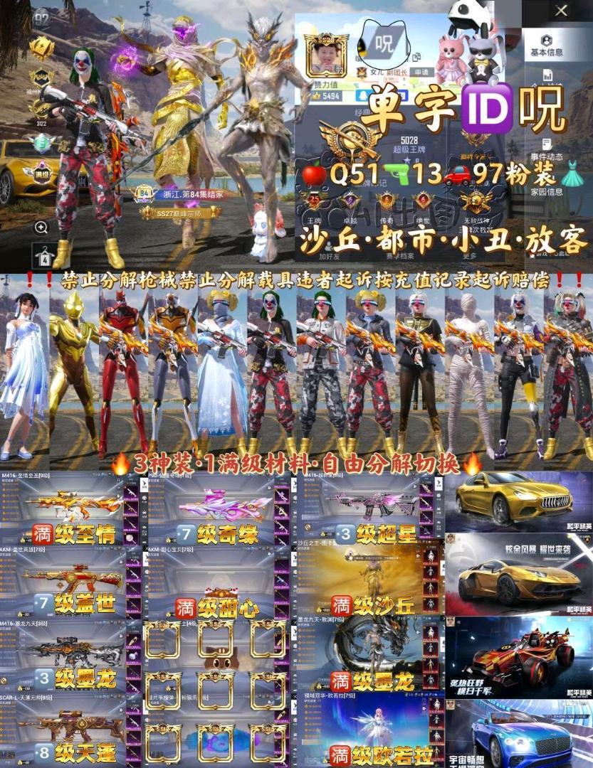 99粉,13载具,55特效枪,463套装,34王牌印记